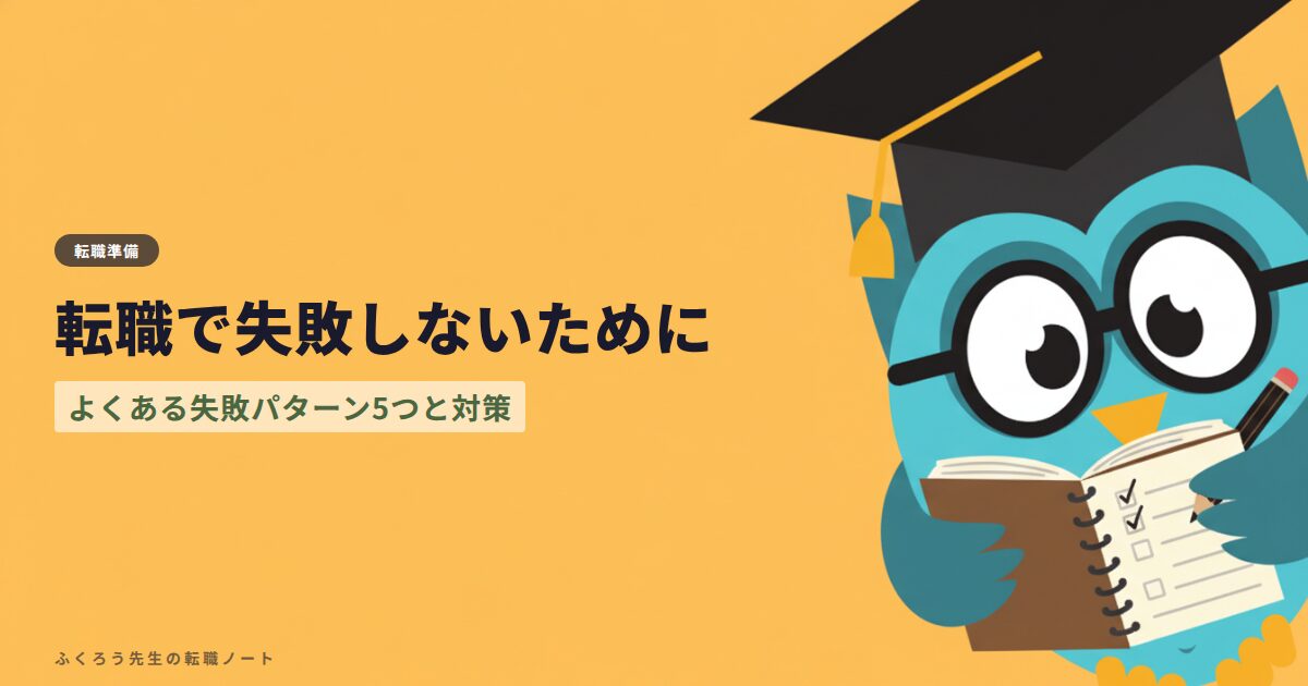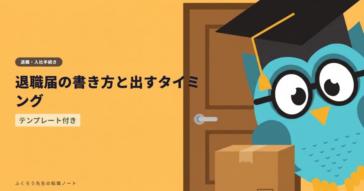 ARCHIVES 2026年4月 転職で失敗しないために|よくある失敗パターン5つと対策 2026.04.04 準備 みつる|ふくろう先生 転職マスター 退職届の書き方と出すタイミング|テンプレート付き 2026.04.04 退社・入社 みつる|ふくろう先生 転職マスター 転職エージェントの上手な断り方|内定辞退・面談キャンセルの例文 2026.04.04 転職エージェント みつる|ふくろう先生 転職マスター IT転職に資格は必要?未経験者が取るべき資格3選 2026.04.04 IT転職 みつる|ふくろう先生 転職マスター 転職の志望動機の書き方|30代向け例文テンプレート5パターン 2026.04.04 応募 みつる|ふくろう先生 転職マスター 在職中の転職活動はバレる?バレずに進める方法と注意点 2026.04.04 準備 みつる|ふくろう先生 転職マスター 転職面接の逆質問おすすめ10選|好印象を与える質問例 2026.04.04 面接対策 みつる|ふくろう先生 転職マスター 転職は何から始める?初めての転職活動ステップガイド 2026.04.04 準備 みつる|ふくろう先生 転職マスター 書類選考が通らない30代へ|見直すべき3つのポイント 2026.04.04 応募 みつる|ふくろう先生 転職マスター ビズリーチの評判|40代が無料プランで使った結果 2026.04.04 転職エージェント みつる|ふくろう先生 転職マスター もっと見る